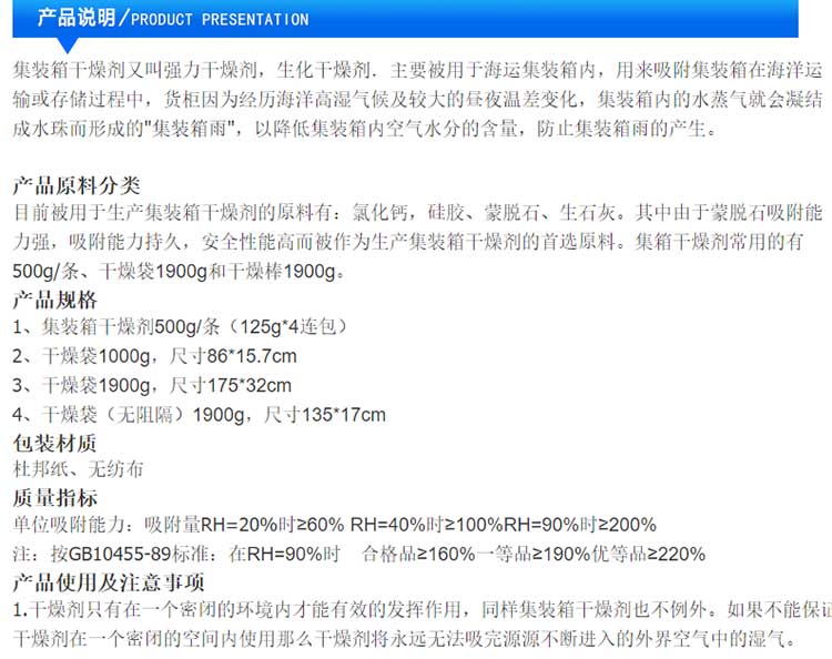 1、集裝箱干燥劑500g/條(125g*4連包)